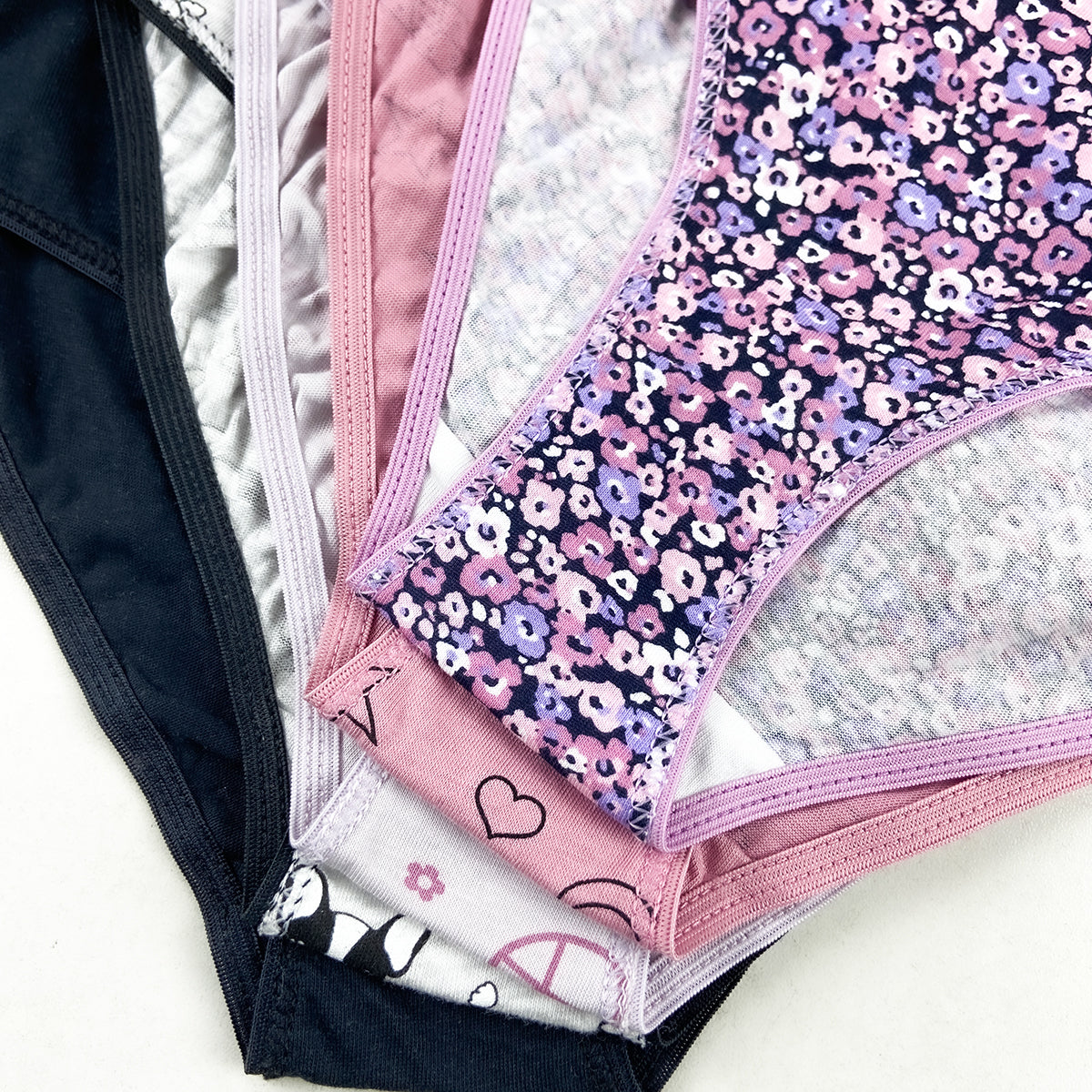 Add a pop of color and all-day comfort to her everyday essentials with this 5-pack of girls’ cotton panties. Made from 100% breathable cotton, these panties come in a mix of cute prints and solid colors, perfect for daily wear.