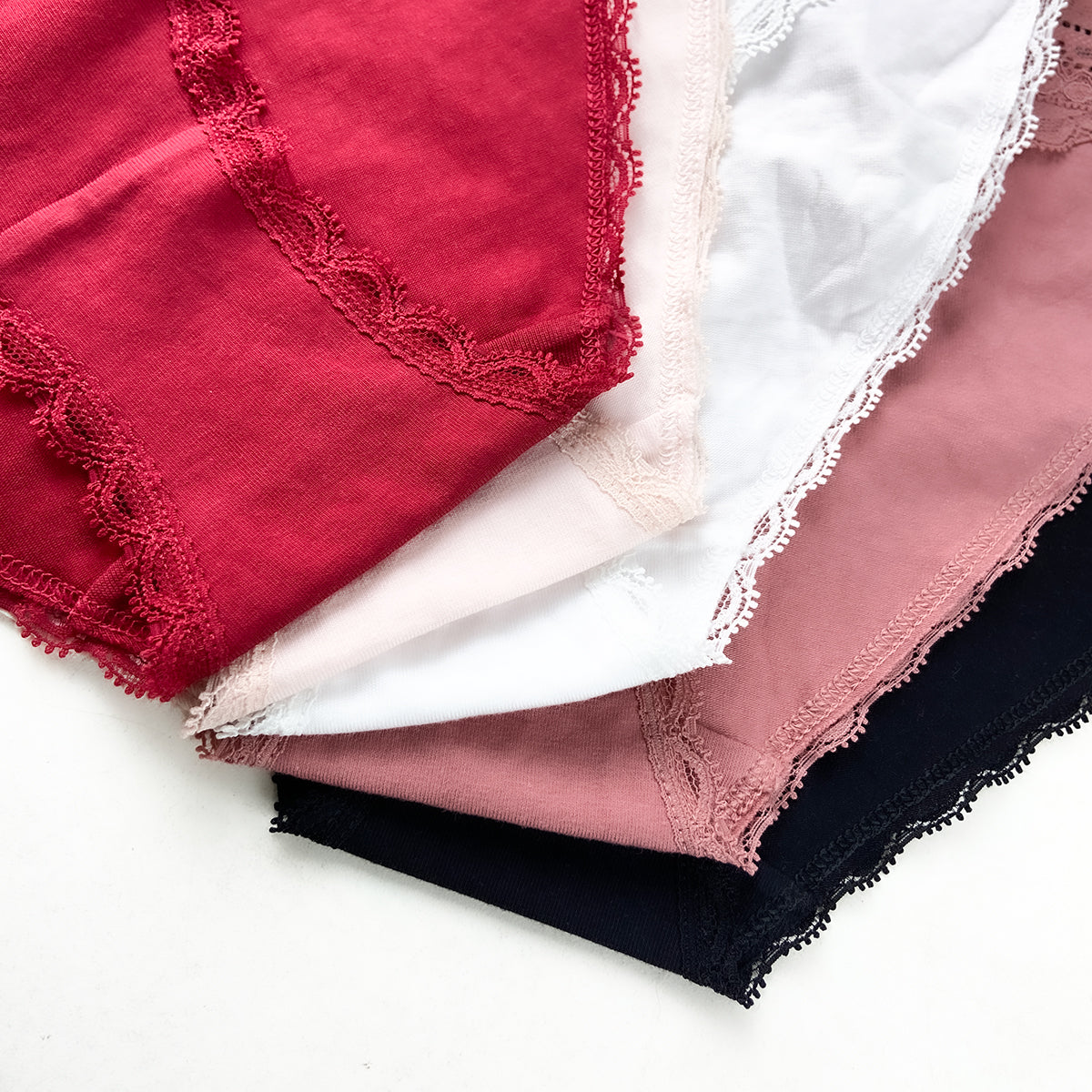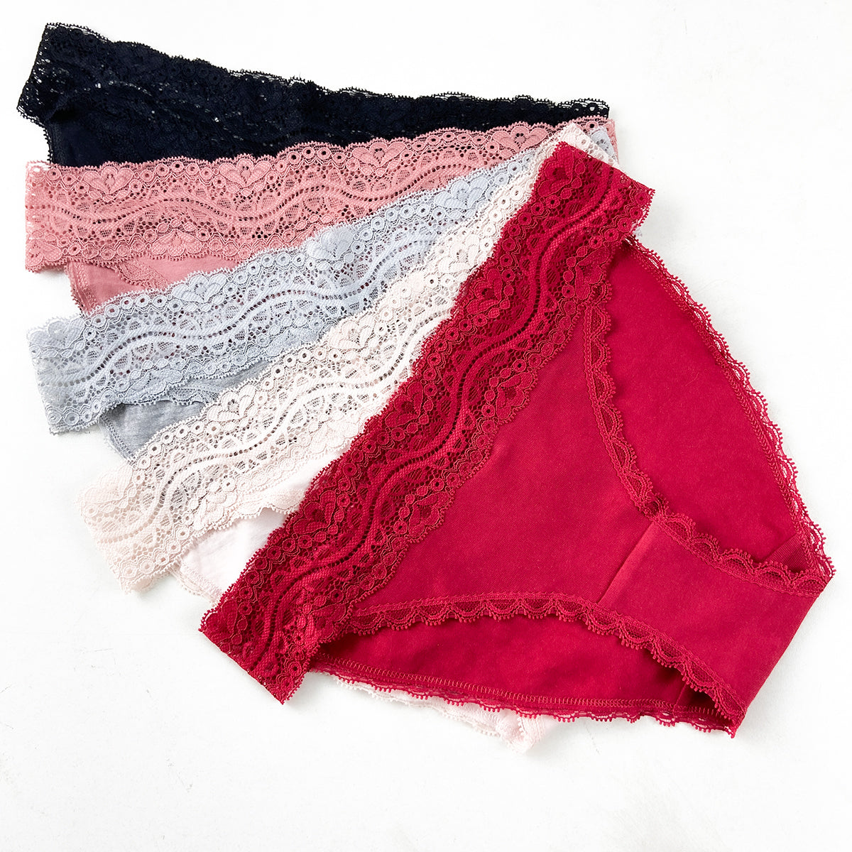 Pack of 3 Womens Mid-Rise Cotton Lace Brief Panties